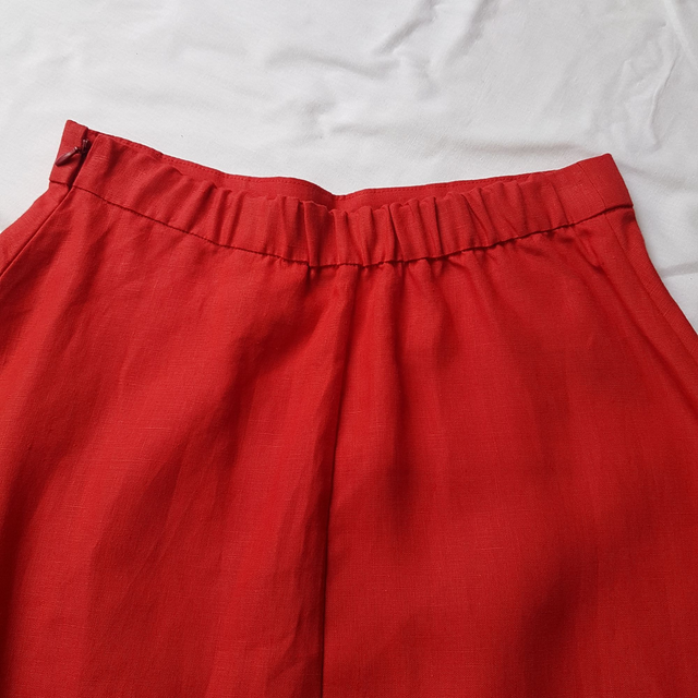 The waist of the skirt has an elastic band at the back. Subtle, it allows the skirt to adjust to variations in this area of the body. A skirt made in size 38 can also be suitable for a size 36 and a size 40.