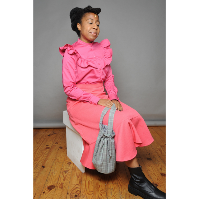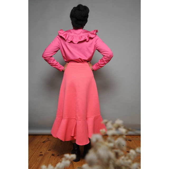 The Rose Bonbon version of La Jupe HIBISCUS is made from a blend of linen and cotton, sourced from deadstock of a couture house.