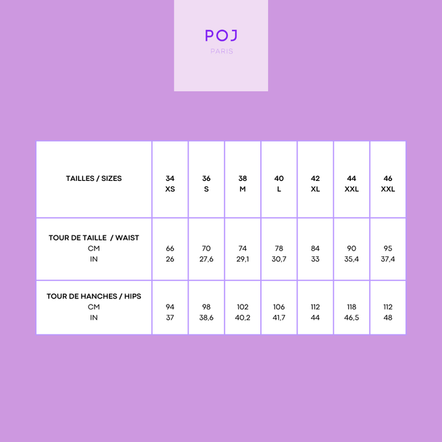 The waist of the skirt has an elastic band at the back. Subtle, it allows the skirt to adjust to variations in this area of the body. A skirt made in size 38 can also be suitable for a size 36 and a size 40.